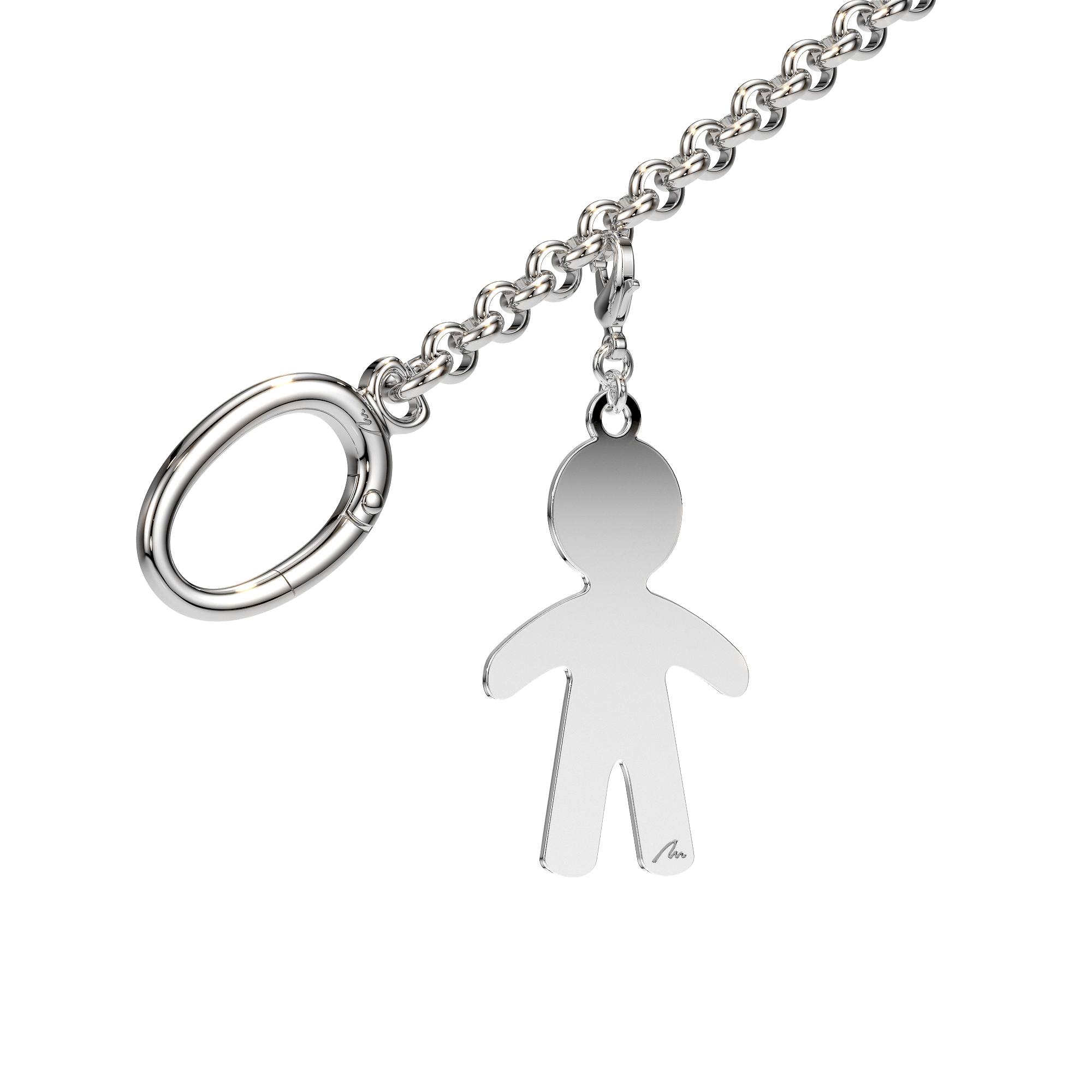 The Boy Bag Charm, made of palladium plated brass, is a symbol of purity, courage, and innocence. It evokes the energy of youth and the joy of discovery, a reminder of the free and playful spirit of childhood.