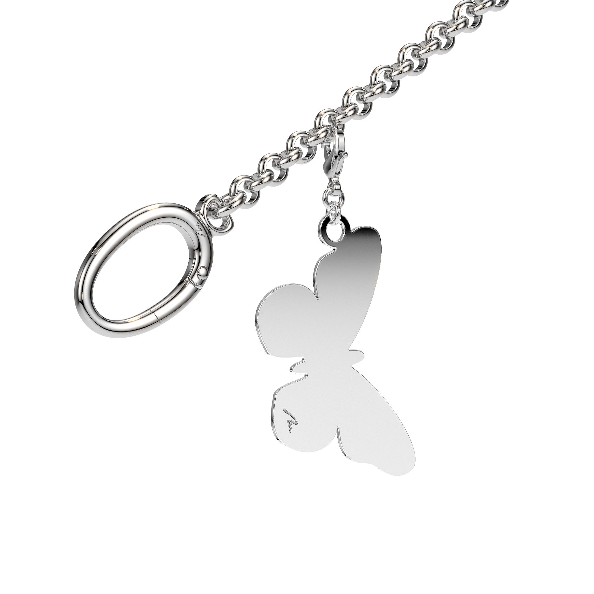 Made of palladium plated brass, this charm is a symbol of beauty and transformation, a refined creation for those who believe in the power of dreams and the elegance of change.