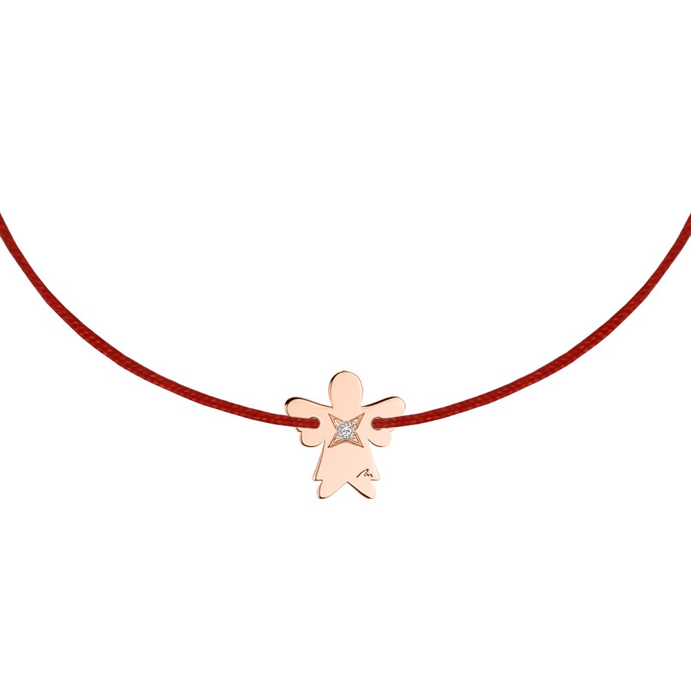 Angel bracelet on string, with white diamond, in 14 KT rose gold