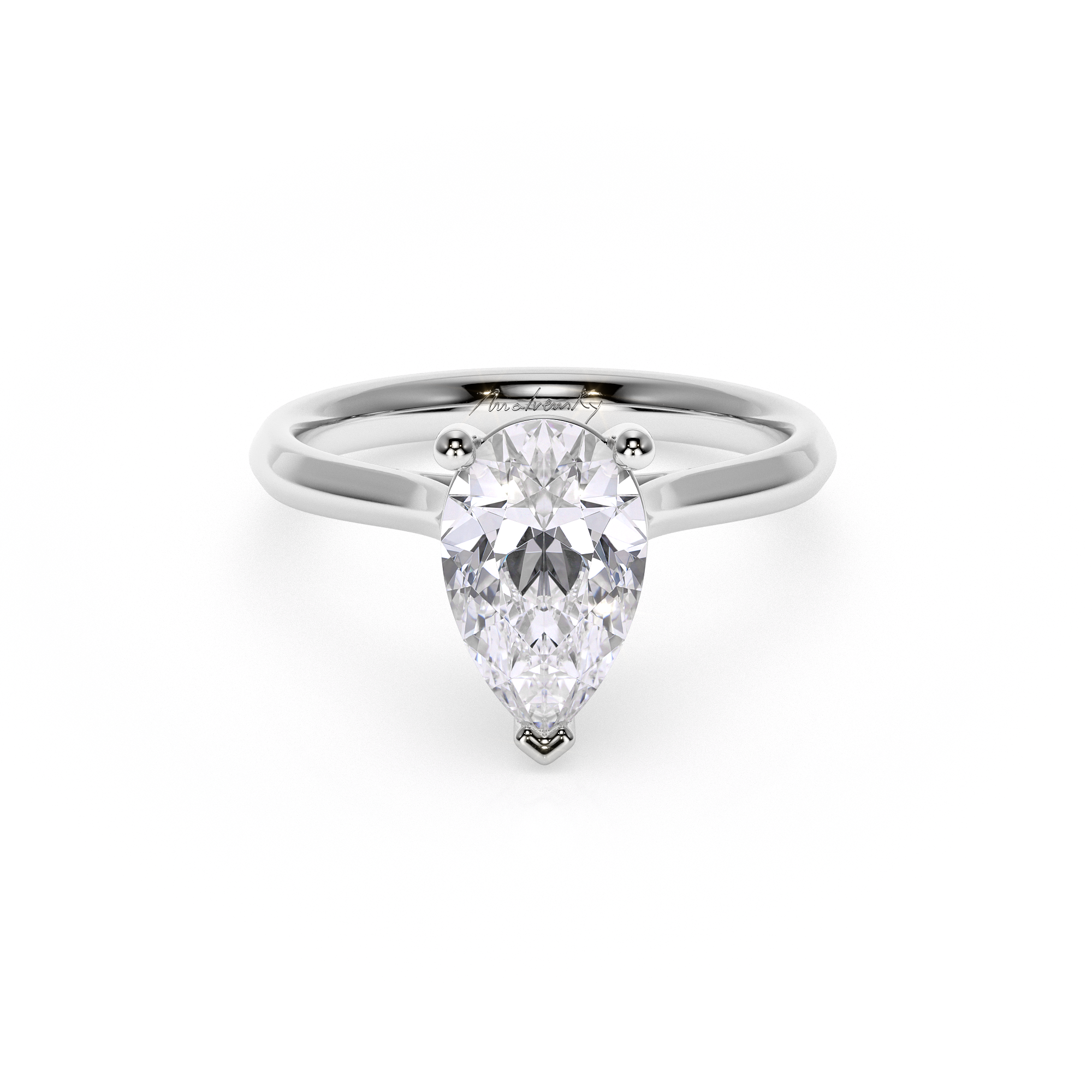 Classic collection engagement ring, with pear cut, 3.07 CT lab grown diamond, F/VS1, in 18 KT white gold.