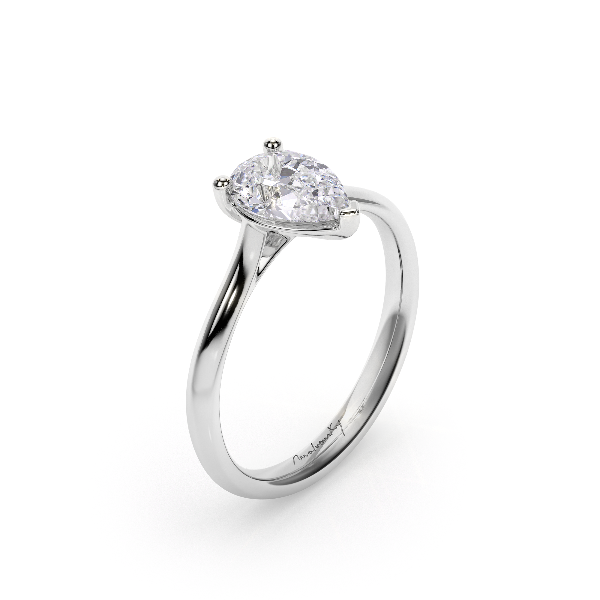 Classic collection engagement ring, with pear cut, 1.22 CT lab grown diamond, F/VS1, in 18 KT white gold.