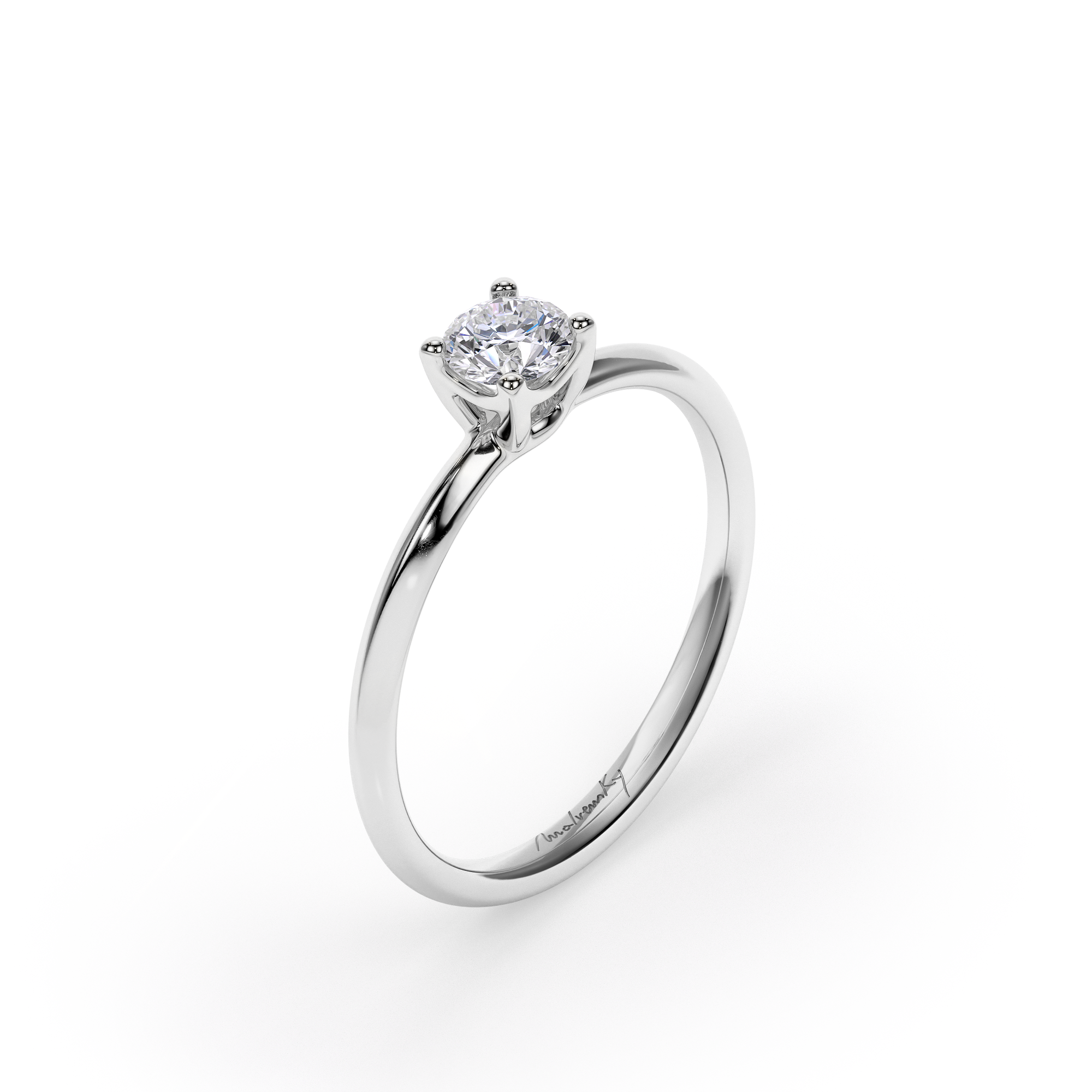 Iconic M collection engagement ring, with round cut 0.28 CT lab grown diamond, D/VS1, in 18 KT white gold.