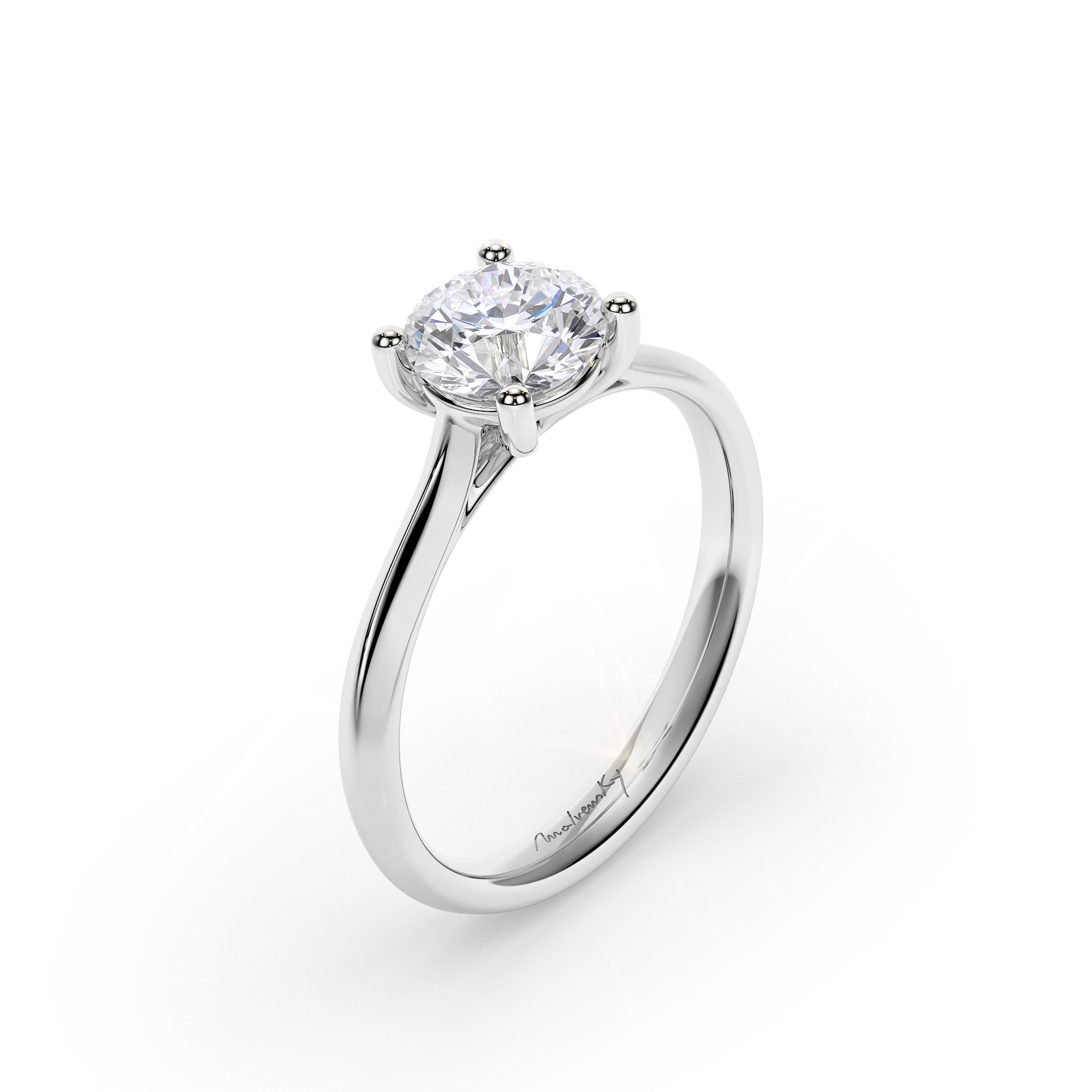 Classic collection engagement ring, with round cut, 1.57 CT lab grown diamond, D/VS1, in 18 KT white gold.