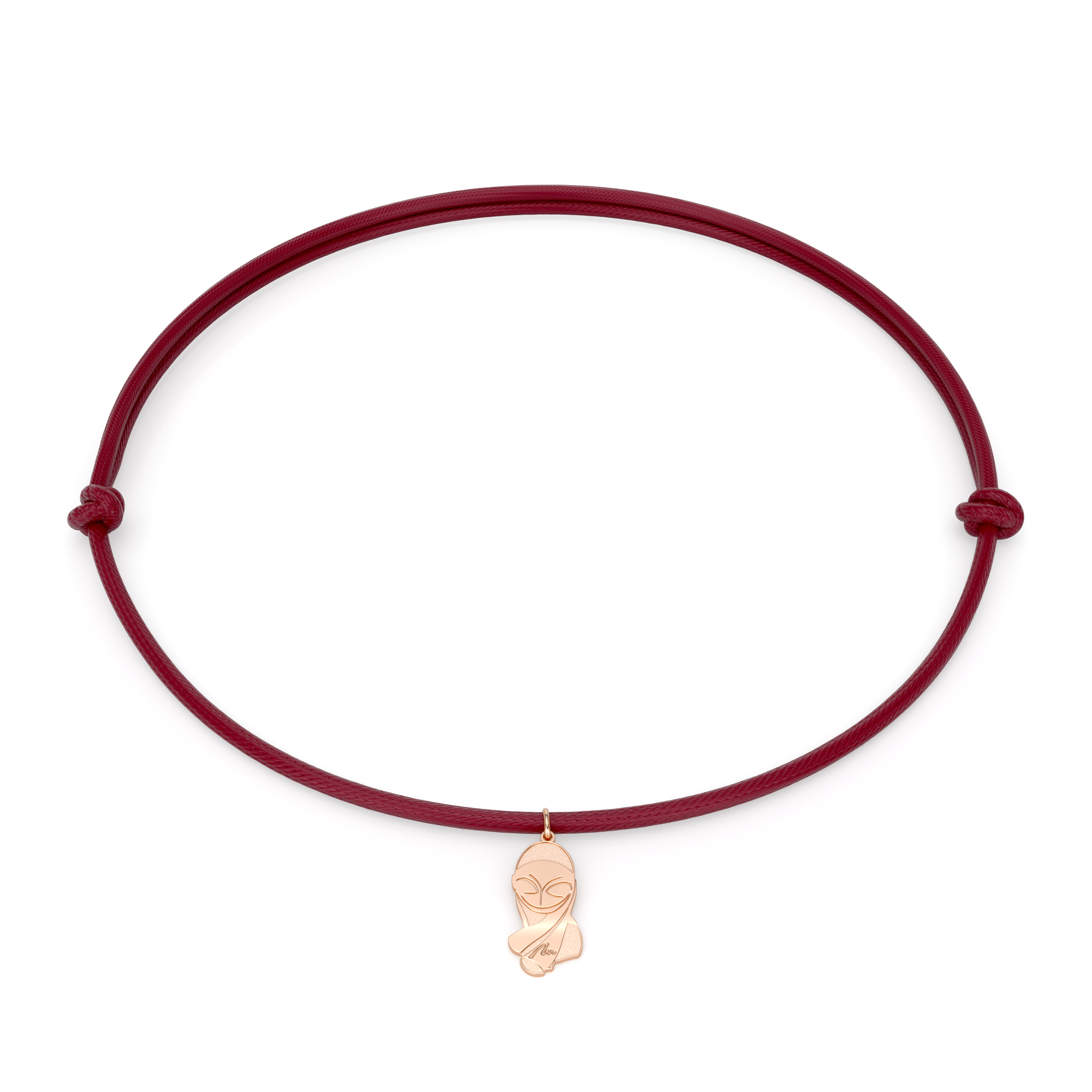Discover the Domnisoara Mademoiselle pendant bracelet on string, inspired by Constantin Brancusi's famous sculpture, a symbol of the grace and delicacy of the human soul. Masterfully crafted, this pendant evokes a symbolic journey into the unknown, inspiring curiosity and a desire for knowledge. The Mademoiselle Pogany red pendant bracelet in 14 KT rose gold pays homage to inner beauty, inviting you to explore the universe through the timeless art of Constantin Brancusi.