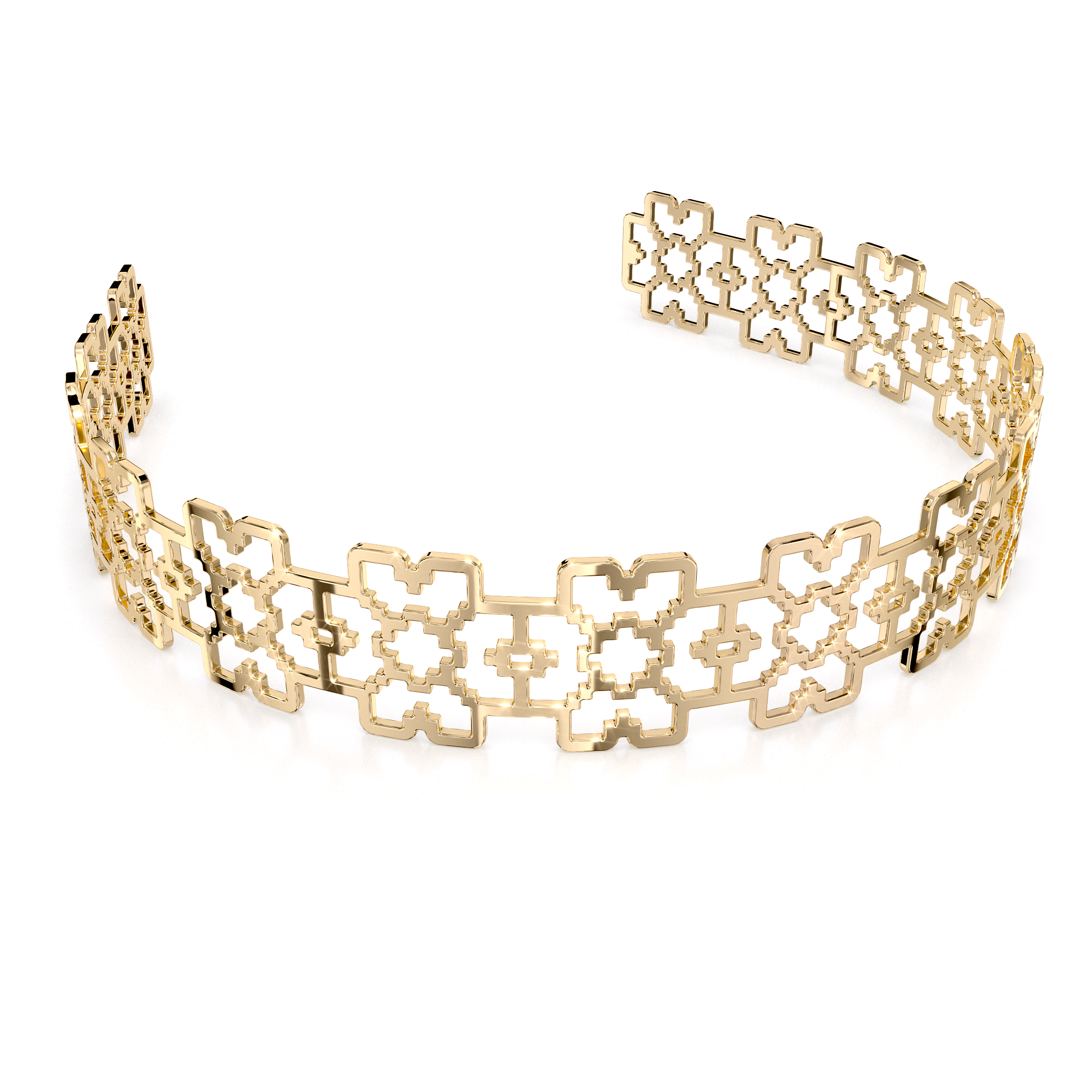 The Traditional Clover Tiara from the Malvensky Collection is a striking statement piece of jewellery, inspired by the four-leaf clover motif — a symbol of luck, protection, and prosperity in Romanian traditional culture. With its geometric details and refined design, this luxurious jewellery pays tribute to authentic Romanian values and heritage.