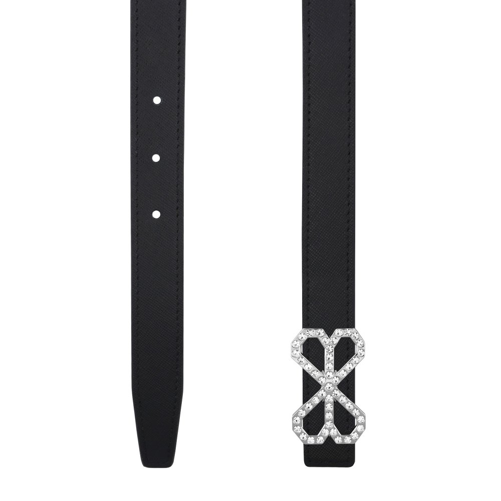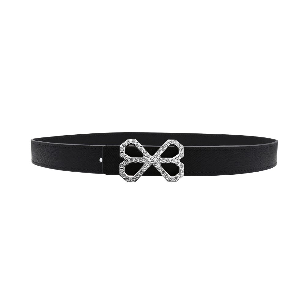 Curea cu Funda si cristale din piele neagra, pentru dama, cu catarama din alama placata cu paladiu si cristale.