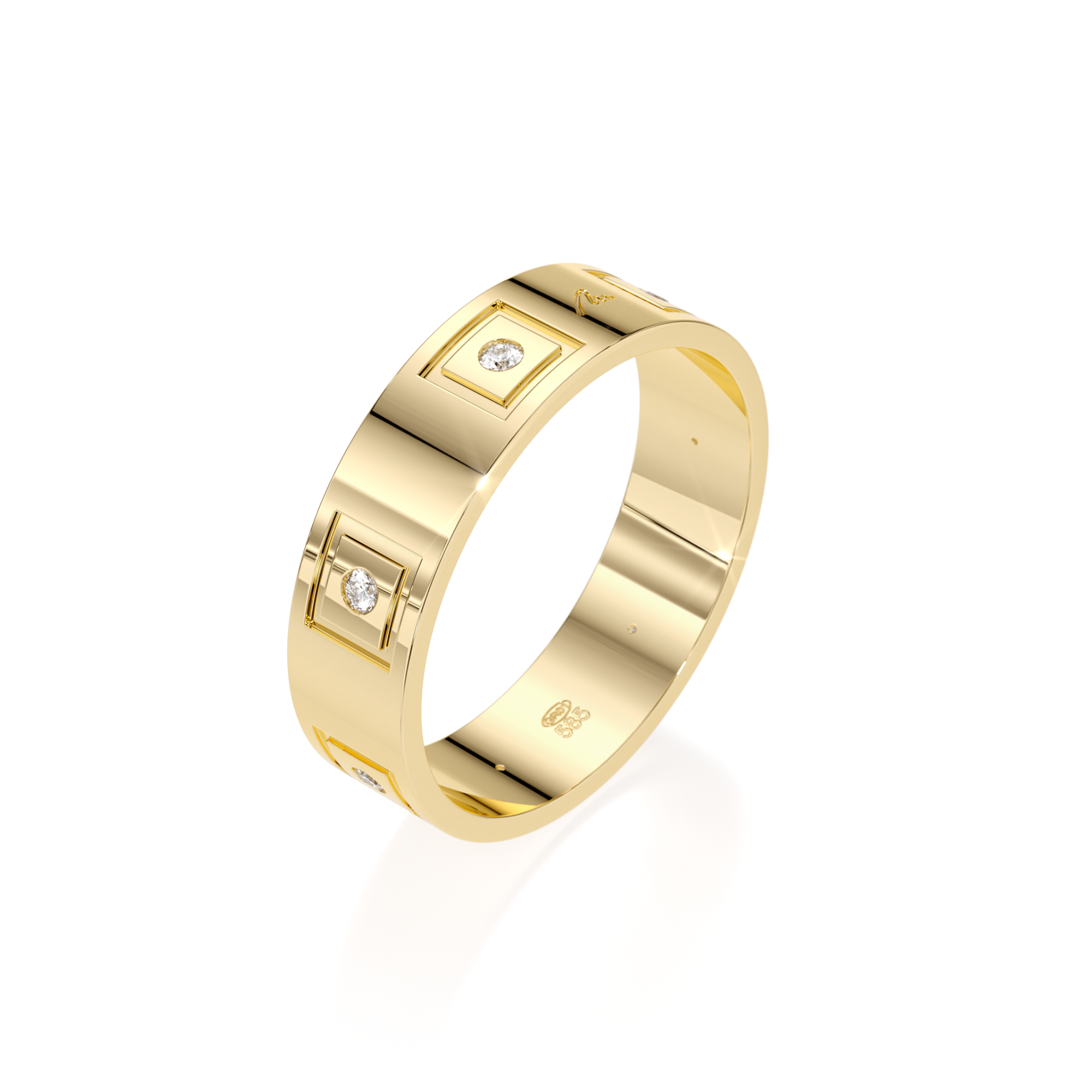 Aceasta bijuterie realizata din aur galben de 14 KT, cu diamante albe, este inspirata din simbolul geometric al tablei de sah – un univers al strategiilor subtile si al fortei regale.