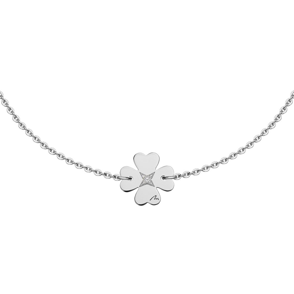 Bratara lant cu pandantiv Trifoi, cu diamant alb, din aur alb 14 KT