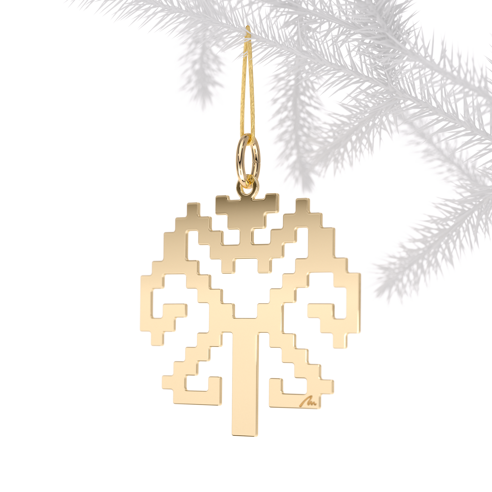 Ornament de brad Copac Traditional, din alama placata cu aur galben
