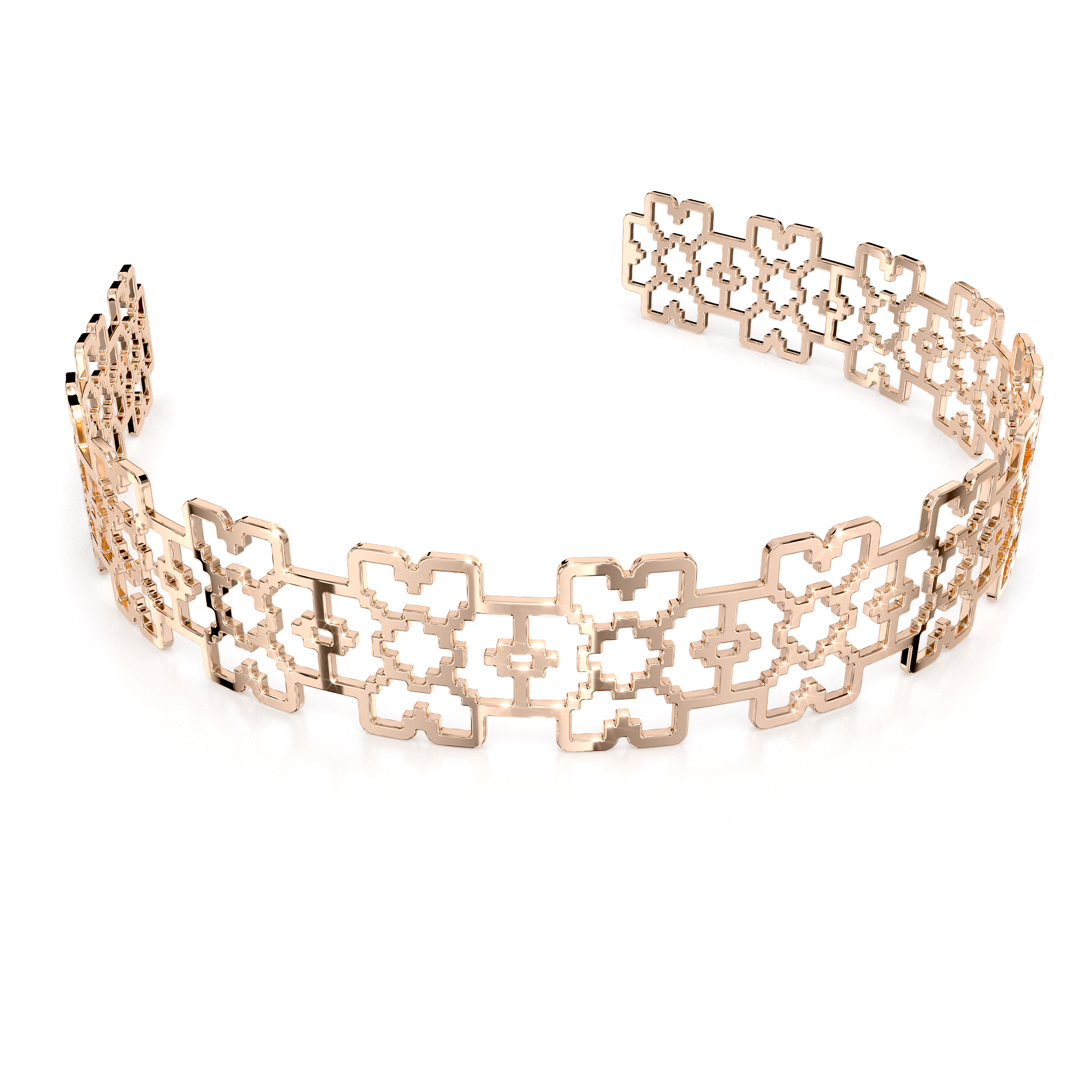 Tiara Trifoi Traditional este o bijuterie statement din colectia Malvensky, inspirata din motivul trifoiului cu patru foi — simbol al norocului, protectiei si prosperitatii in cultura traditionala romaneasca. Prin detaliile geometrice si delicatetea designului sau, aceasta bijuterie de lux onoreaza valorile si traditiile autentice romanesti.
