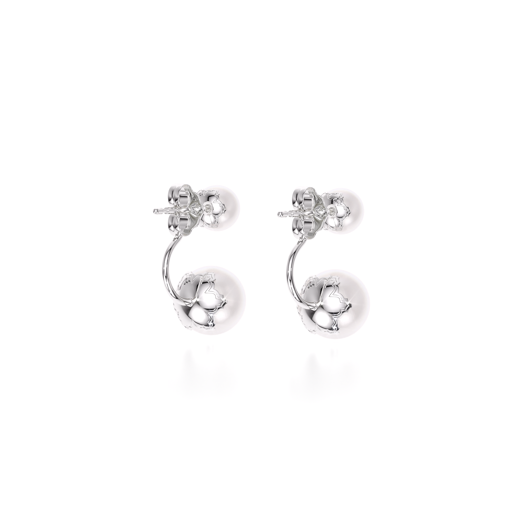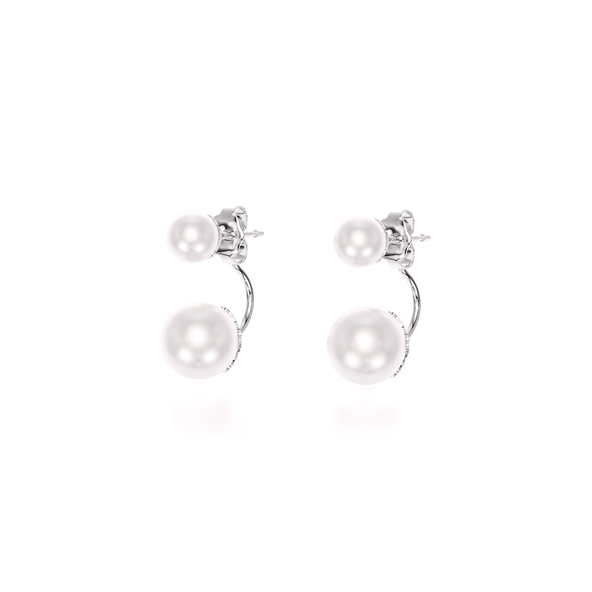 Cercei cu doua perle de cultura, din aur alb 14 KT