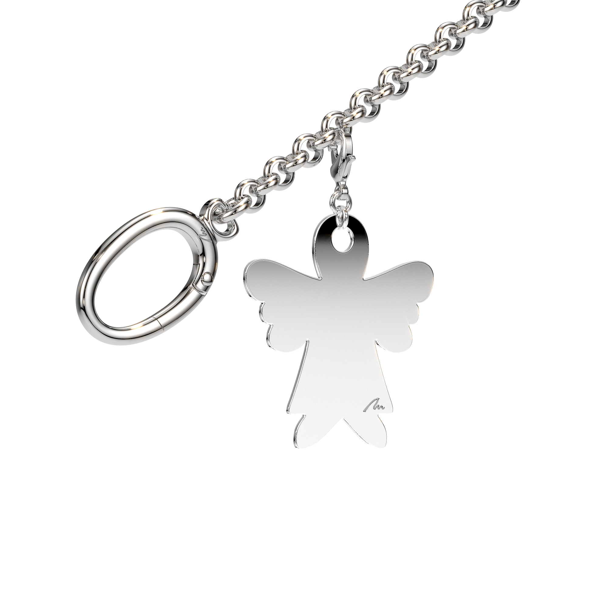 Acest charm pentru geanta din alama placata cu paladiu poarta un mesaj de grija si afectiune profunda, un simbol al prezentei protectoare si al legaturii emotionale care uneste. Un detaliu pretios, incarcat de semnificatie, potrivit pentru a fi oferit celor dragi, la orice varsta.