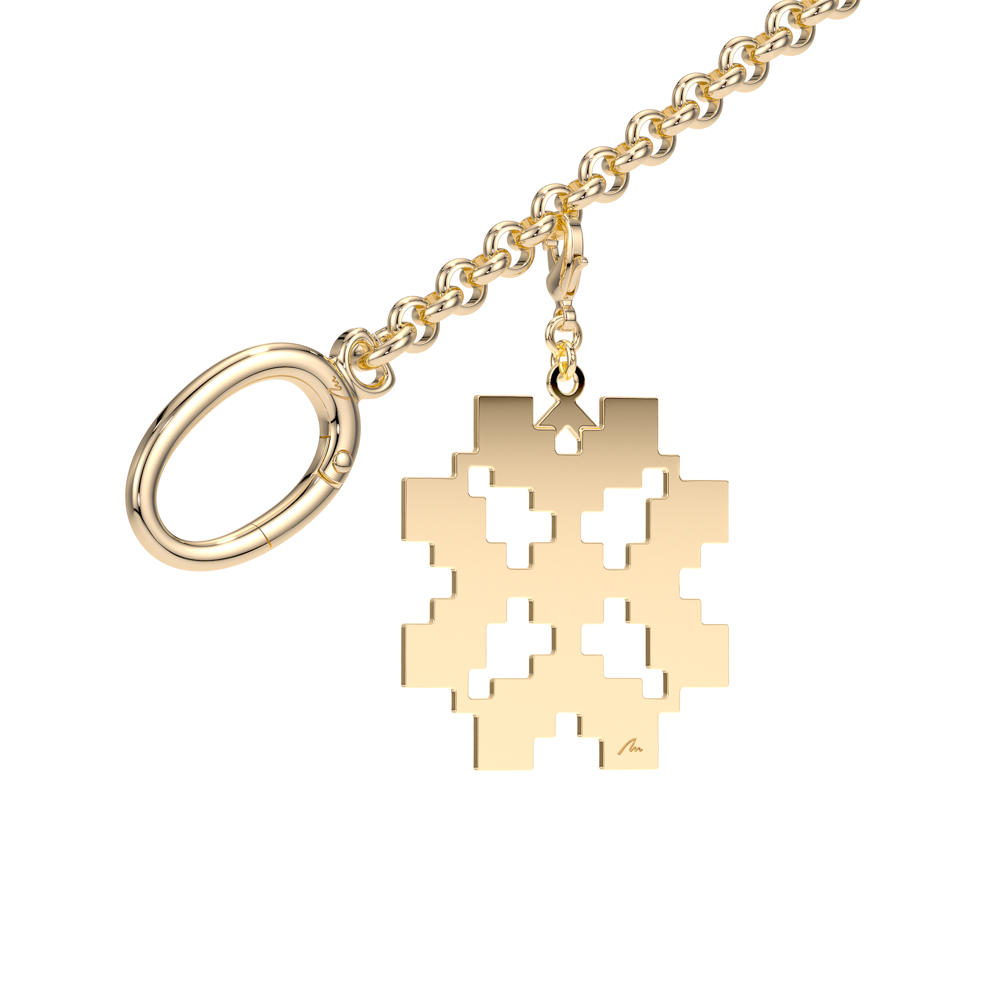 Acest charm pentru geanta din alama placata cu aur galben reprezinta legatura cu divinul, increderea in destin si convingerea ca lucrurile bune isi gasesc mereu drumul spre noi. O bijuterie Malvensky care aduce in prezent traditia si semnificatia autentica a norocului romanesc, un talisman pretios si un cadou plin de sens.