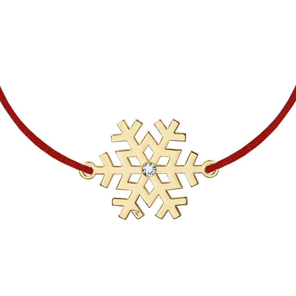 Bratara pe snur cu fulg de nea, cu cristal, din alama placata cu aur galben.