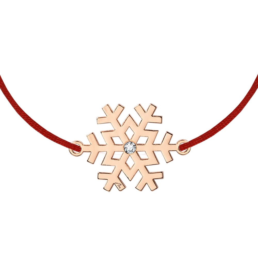Bratara pe snur cu fulg de nea, cu cristal, din alama placata cu aur roz.