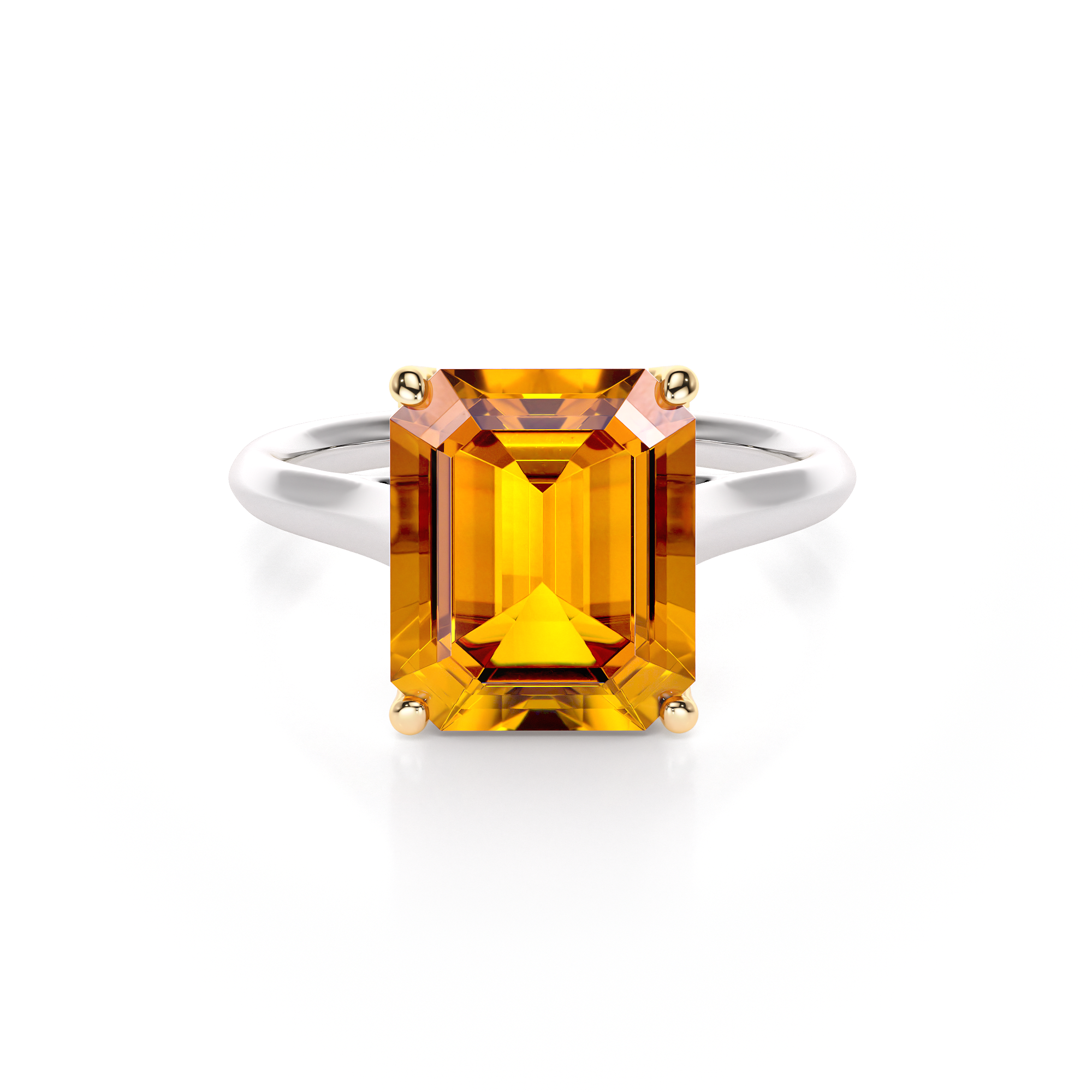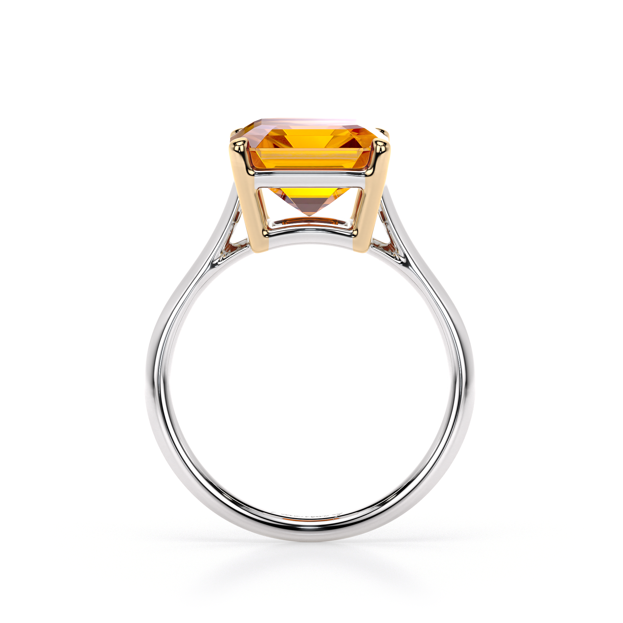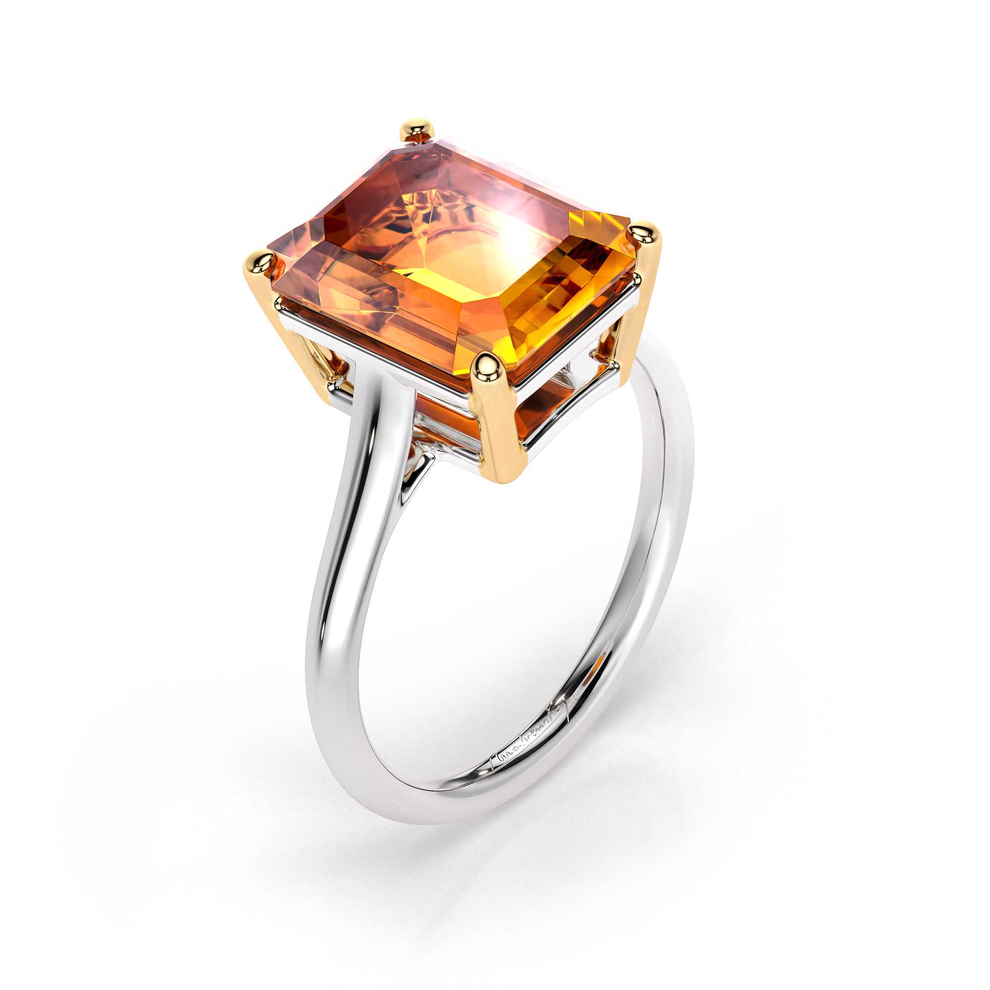 Inel La Grande Bellezza cu citrin emerald cut de 5.13 CT (aproximativ 12x10 mm), din aur alb de 18 KT, cu elementele de sustinere ale citrinului din aur galben de 18 KT.