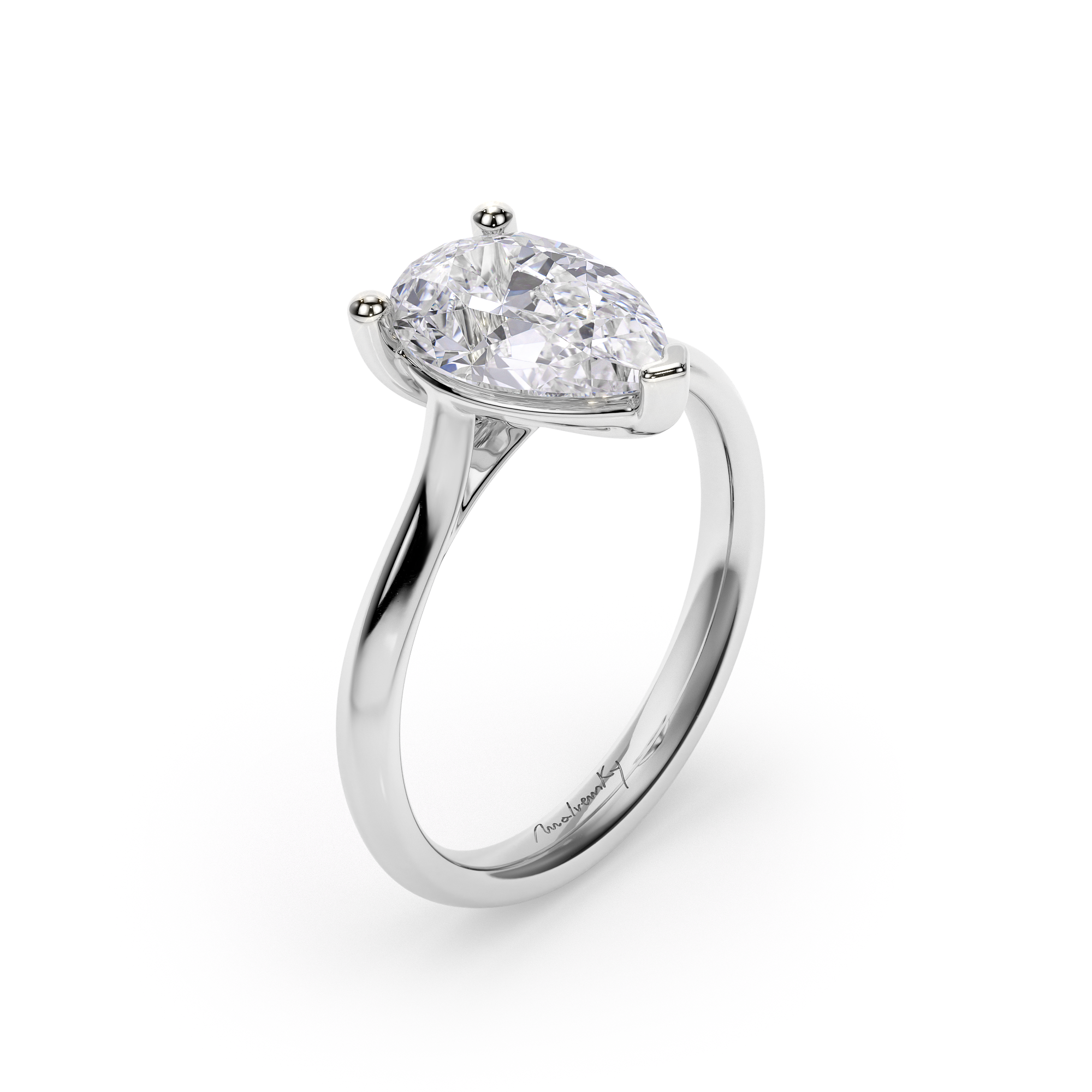 Inel de logodna din colectia Classic, cu diamant de laborator pear cut de 4.01 CT, D/VS1, din aur alb de 18 KT.