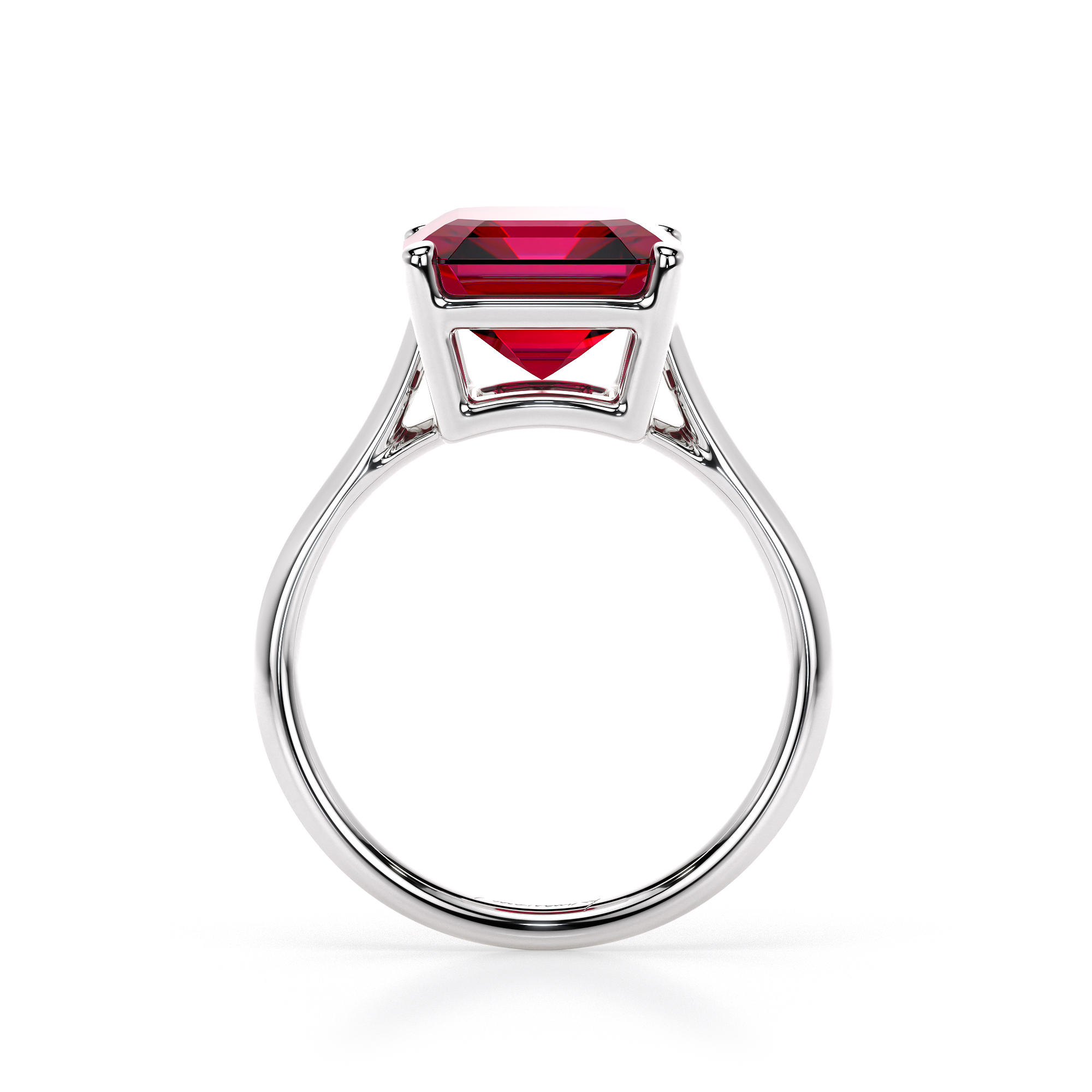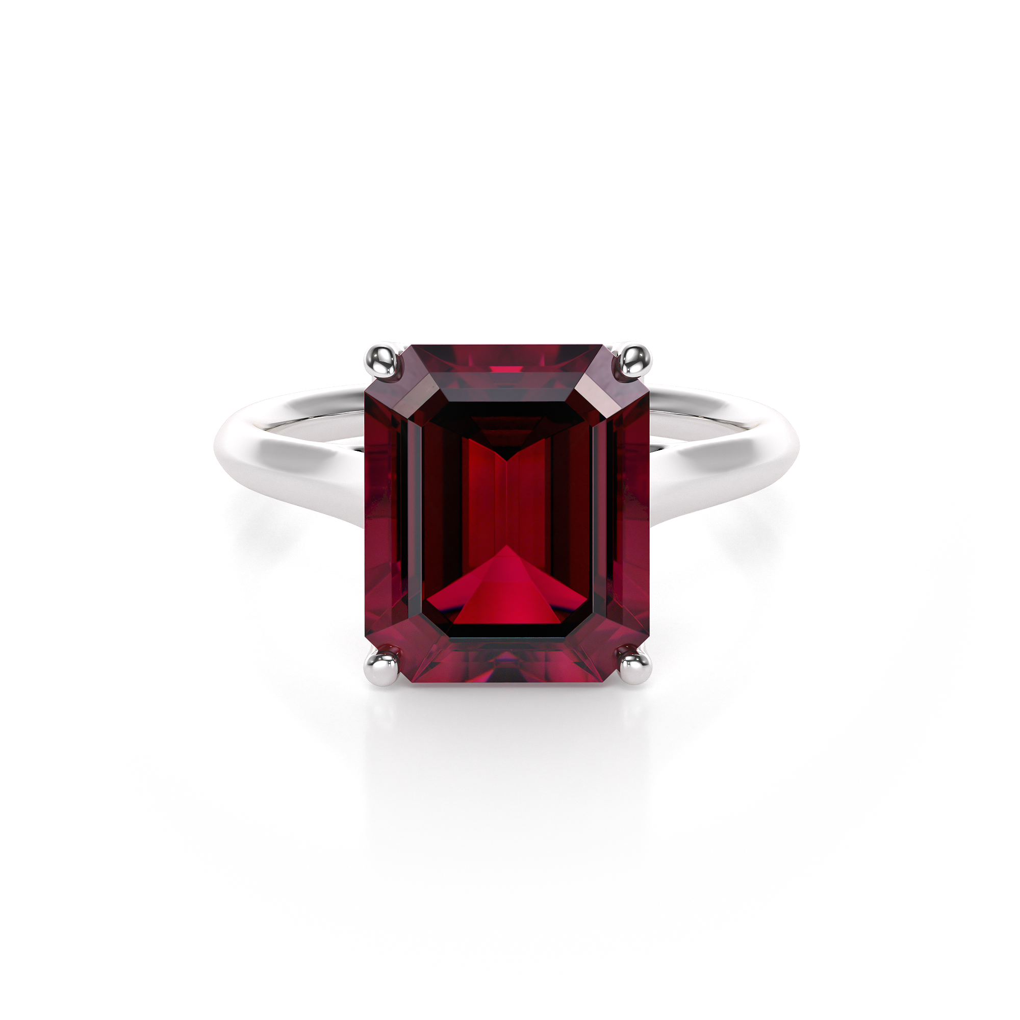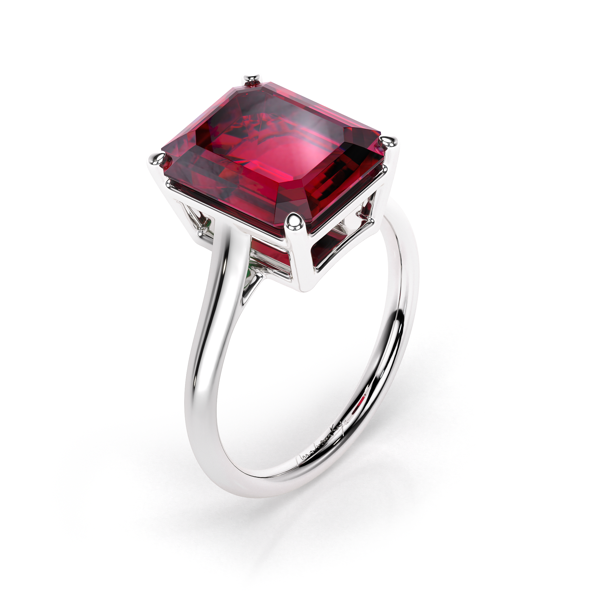 Inel La Grande Bellezza cu rodolit emerald cut cu un carataj estimativ de 6 CT (12X10 mm), din aur alb de 18 KT.