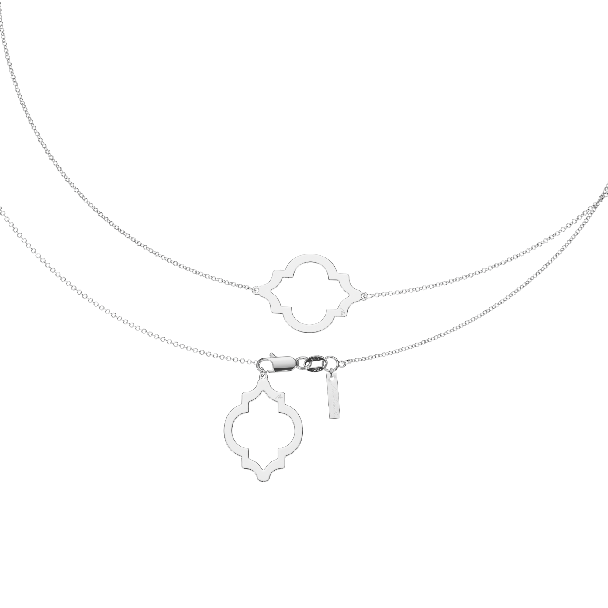 O bijuterie pretioasa si versatila, care impresioneaza prin farmecul sau delicat, de o eleganta absoluta. Inspirat de liniile armonioase ale culturii orientale, colierul Amina din aur alb de 14 KT pune in evidenta puterea de seductie si eleganta purtatoarei, transmise natural, fara efort.