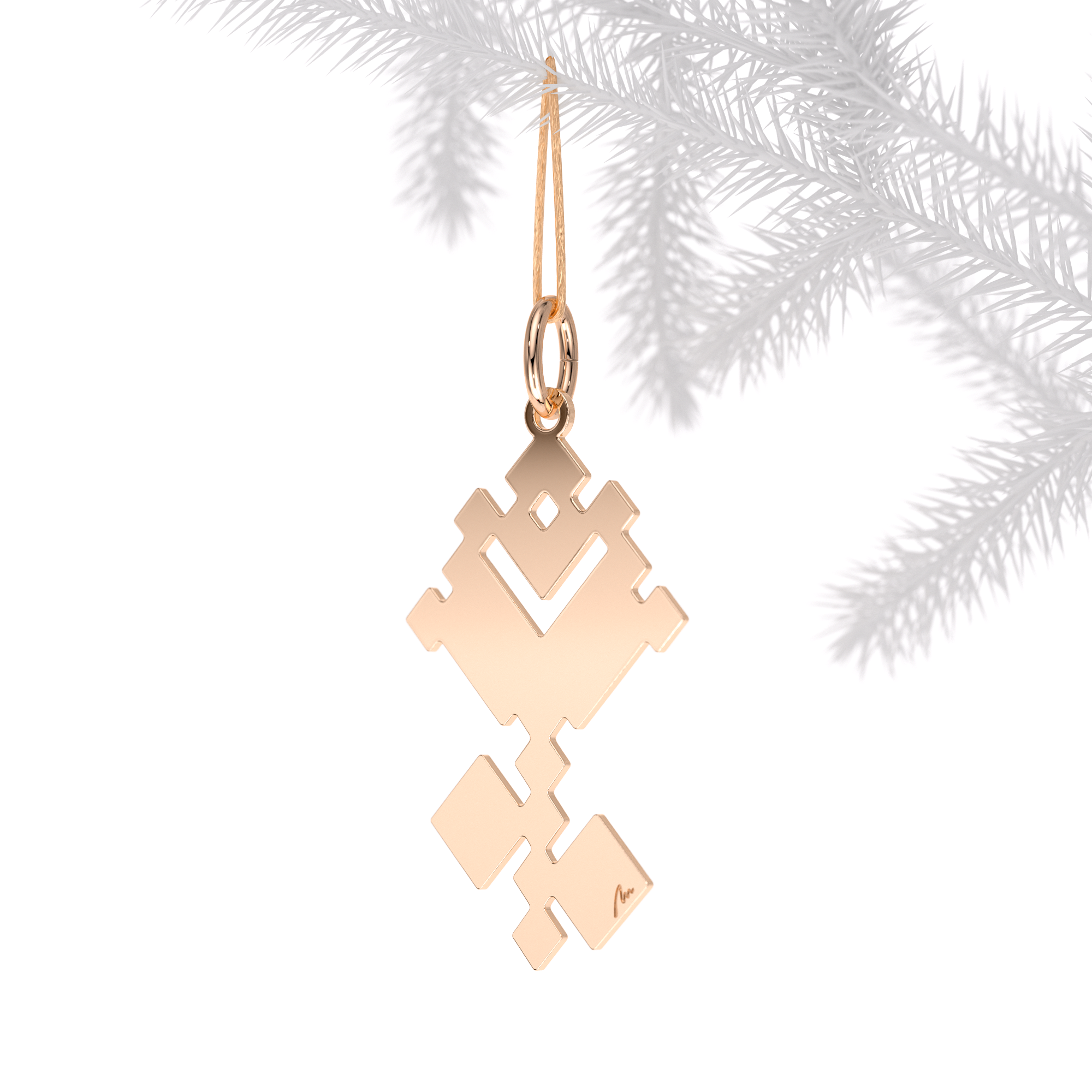 Ornament de brad Trandafir Traditional, din alama placata cu aur roz